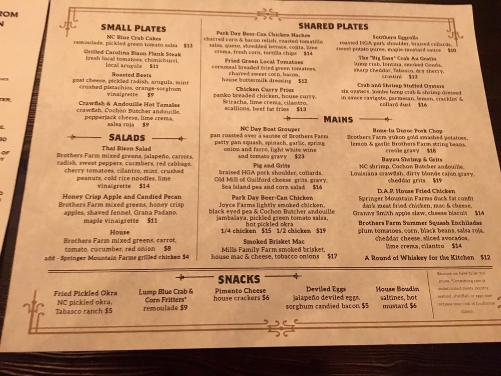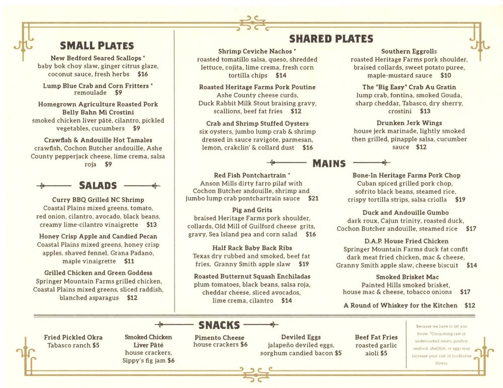 Starters such as the tantalizing Deviled Eggs and N.C. Lump Blue Crab and Corn Fritters showcase the creativity of the chef. For shared plates, consider the succulent Short Rib Barbacoa Nachos or the exquisite New Bedford Seared Scallops, perfect for those who love seafood.